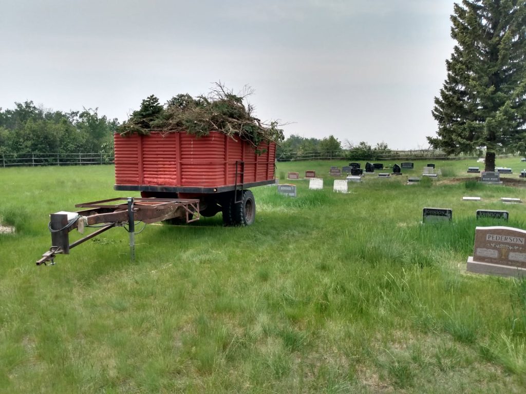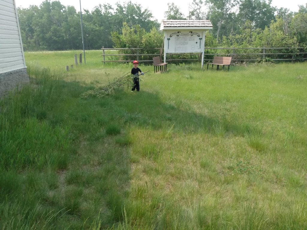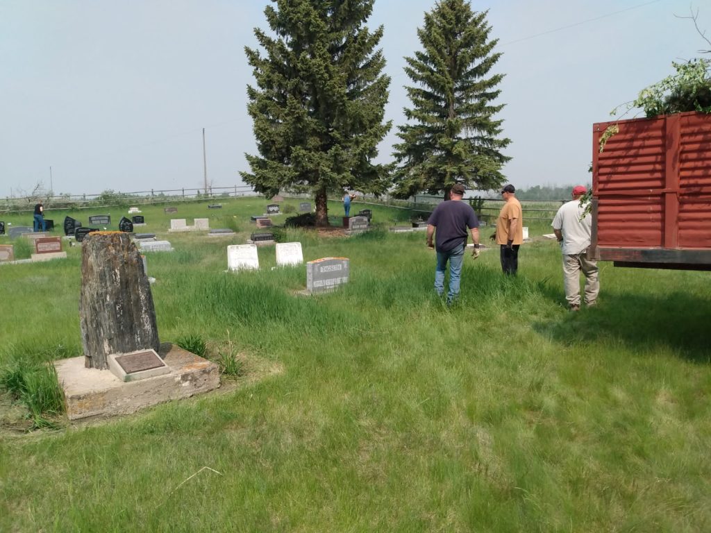 There was a workday at the cemetery on May 31 to clean up the cemetery area of tree debris from trimming and to get ready for the first cut of the season. The first grass cut happened on June 2. Come see our selection of native grasses and plants, there are different ones showing up all during the season.